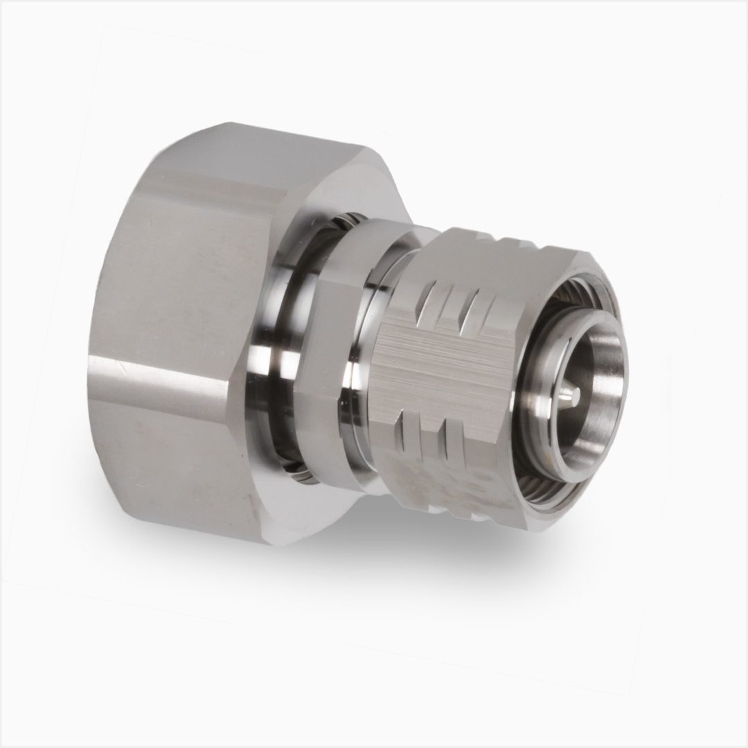 Adaptador recto 4.3/10-7/16 macho a macho, facilita la conexión entre equipos que de otra manera no serían compatibles debido a sus conectores RF distintos.