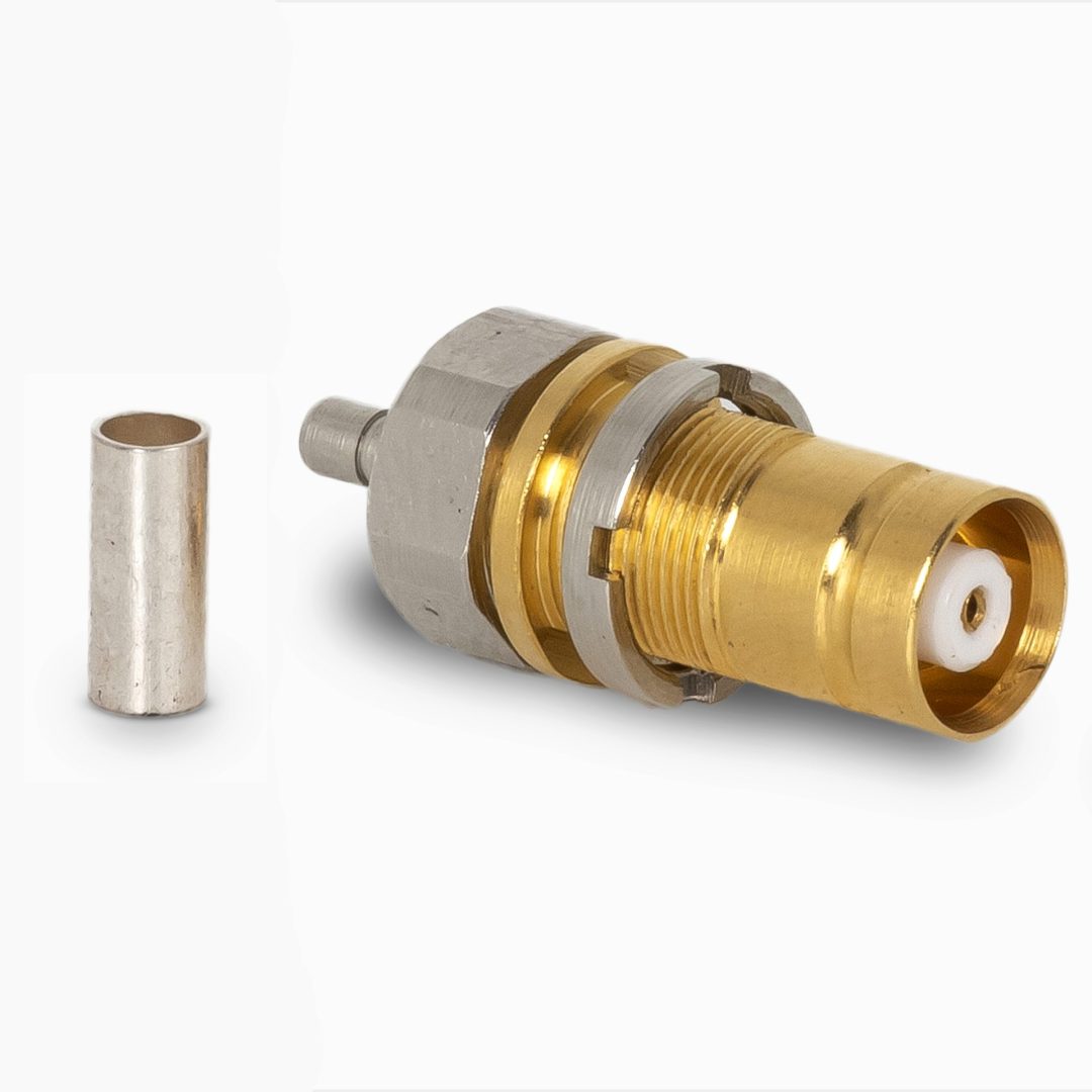 Conector 1.6/5.6 hembra panel solder-crimp RG-179/BU de precisión para aplicaciones de alta frecuencia.
